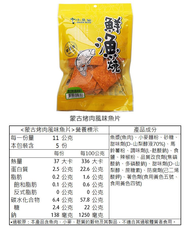 鮮漁燒-蒙古烤肉風味魚片55g